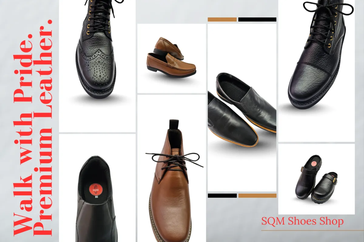 SQM Shoes Shop creates premium leather shoes 100% made in Marikina. Crafted by skilled artisans, every pair reflects pride, quality, and lasting comfort designed for everyday wear and timeless style.