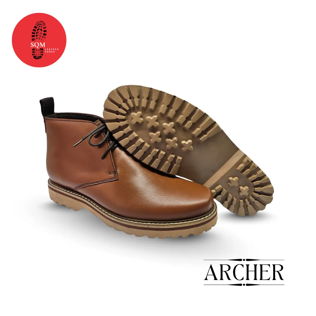 Step out in style with these rugged tan leather shoes. Designed for both comfort and durability, they feature a sturdy rubber light weight outsole, cushioned insole, and secure lace-up closure — perfect for casual or outdoor wear.