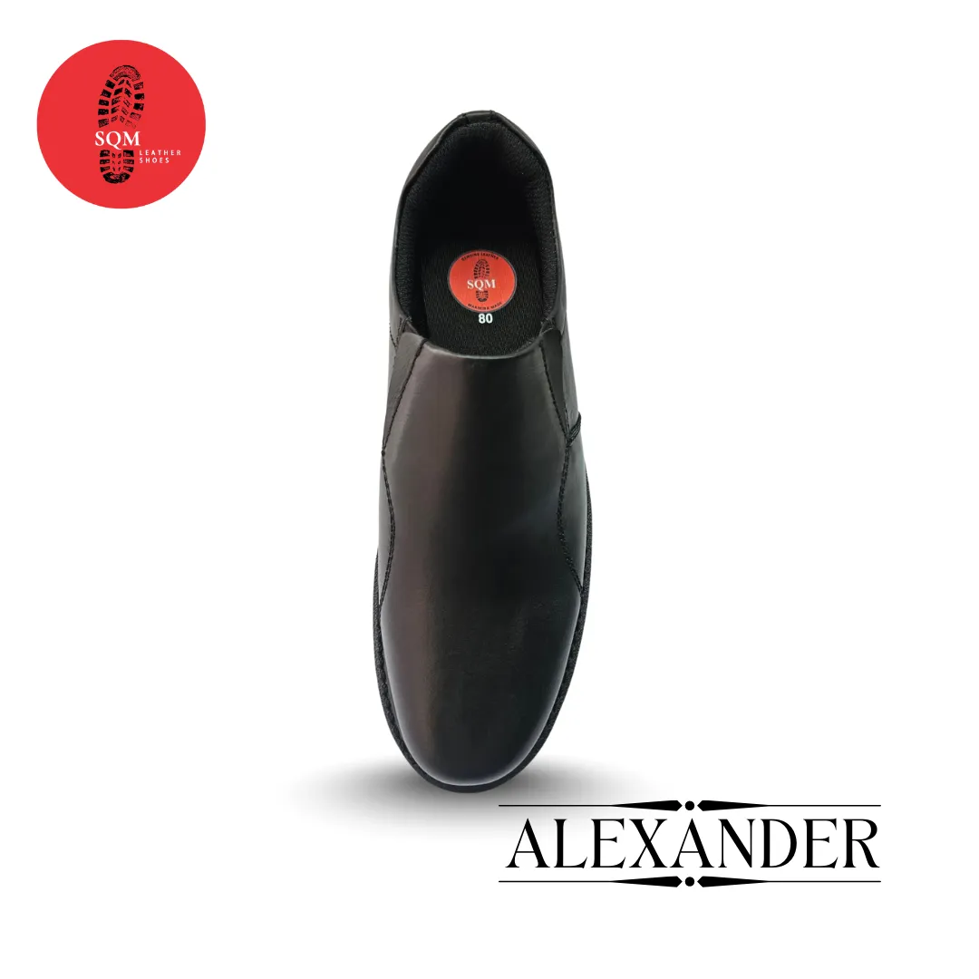 Step into comfort and style with these sleek black slip-on leather shoes. Crafted from genuine cow leather, they feature a cushioned sole for all-day support and a durable, light weight sole. Perfect for office wear, school shoes, formal occasions, or everyday use.